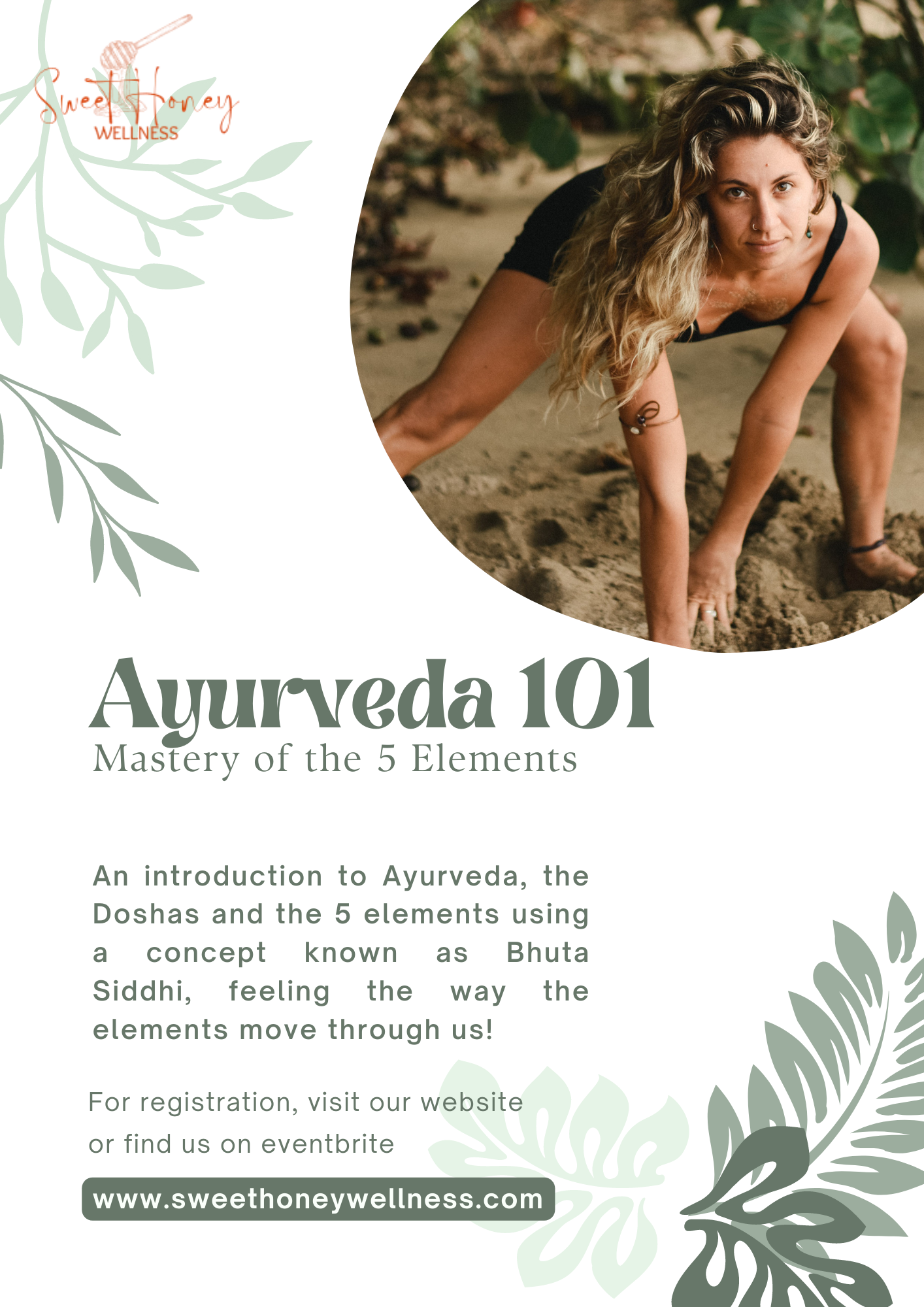 This workshop includes a 30 minute discussion on the beginning understandings of Ayurveda, a discover your dosha quiz, question and answer interaction, 10 minutes of light movement and 15 minute meditation on Bhuta Siddhi where we discover how to master the elements that live inside of us. This is a journey of self discovery and understanding.